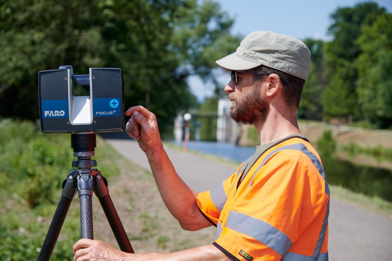 Im Zuge der großanlegten Abriss- und Umbaumaßnahmen vom Sossenheimer Wehr Sommer 2023, federführend durch die SEF, wurde auch eine umfassende Bestandserfassung der Topografie vom Ursprungsgelände benötigt. Eine Fläche von knapp 32.000 m² musste unter nicht ganz einfachen Bedingungen vom Stadtvermessungsamt Frankfurt vollständig erfasst werden. Wasserflächen, hohe Vegetation und eine langgestreckte Geometrie waren zu beachten. Für eine dichte Abtastung, mit einer Auflösung im einstelligen Zentimeterbereich, trotz dieser Flächengröße, war die Nutzung von bildgebenden und berührungslos schnell messenden Sensoren essentiell.