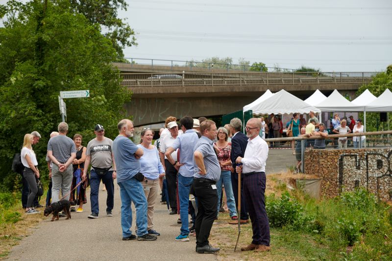- Für Erholungssuchende und um das monotone Flussprofil aufzubrechen wird an zwei Stellen das nördliche Niddaufer abgeflacht. Dies trägt dazu bei, die Gewässerstruktur zu verbessern. Der Fluss soll für die Bürger*innen hier zugänglich bzw. erlebbar sein. Im Gegenzug dazu soll sich die Fläche zwischen Nidda und Grill´schem Altarm als natürlicher Rückzugsort für die Tier- und Pflanzenwelt entwickeln können.